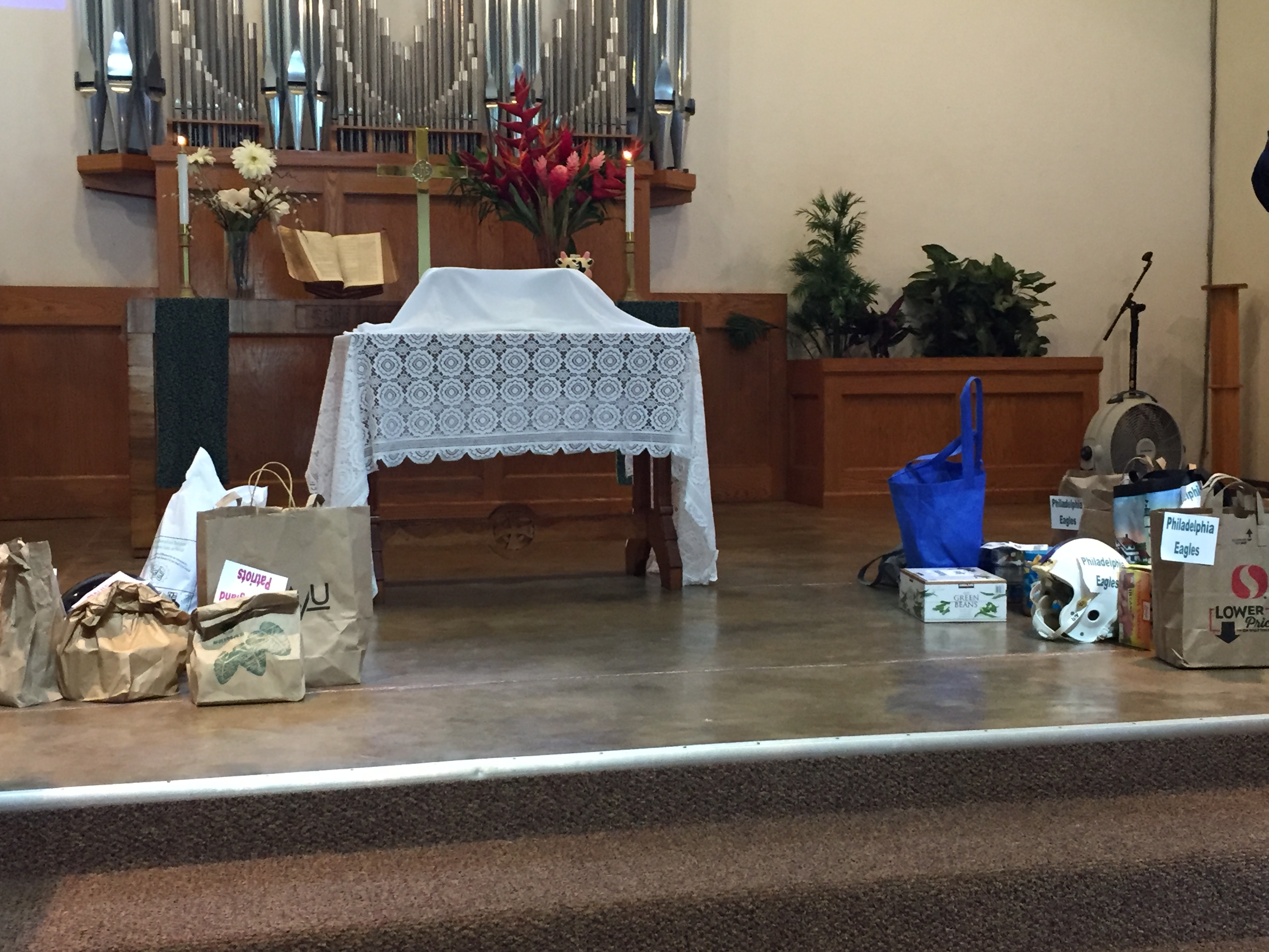 Helping to tackle hunger on our island, the annual fun contest is held each year during worship on Super Bowl Sunday. Donated non-perishable food items are brought in and placed in an end-zone of your choice. The donations are then weighed and totaled to determine a winner. Food and monetary donations from this event go to the Loaves & Fishes Food Pantry at St. Michael & All Angels Episcopal Church in Lihue.
